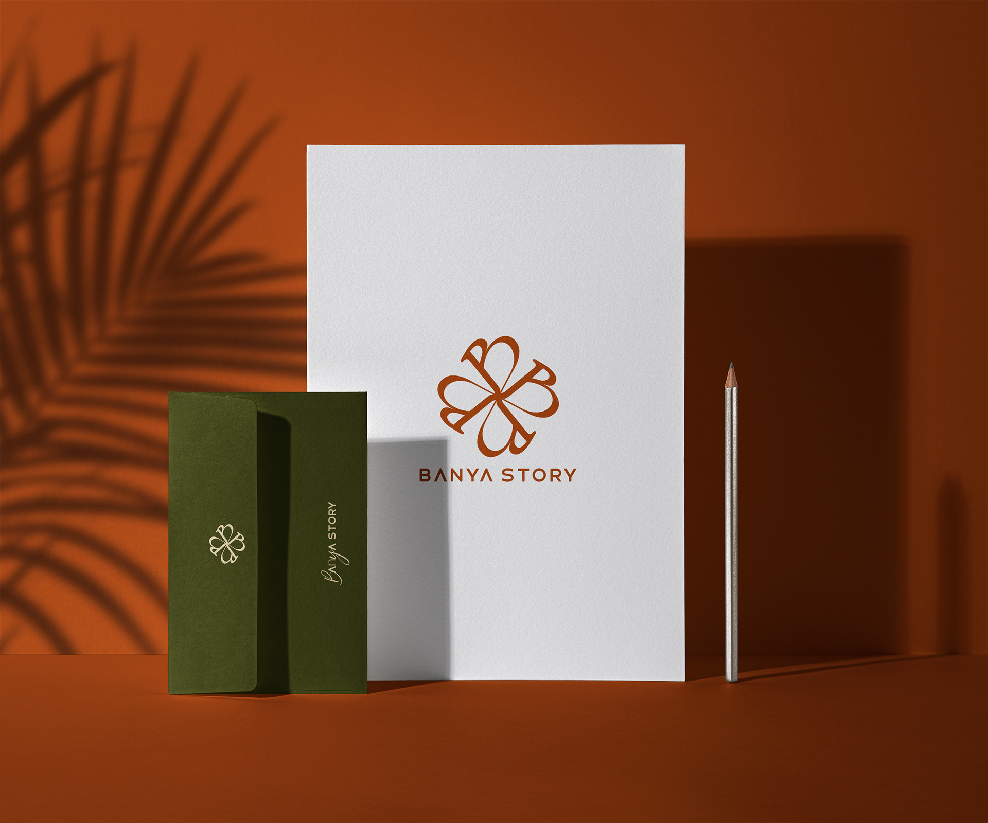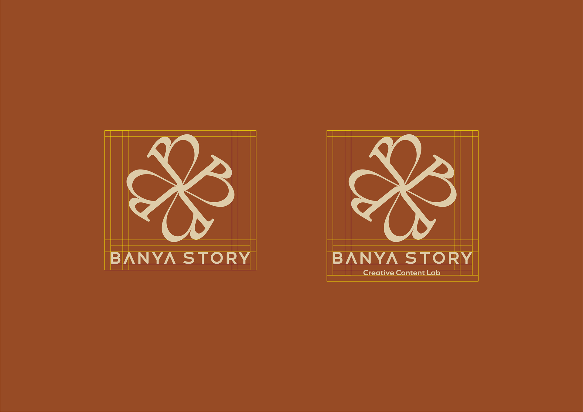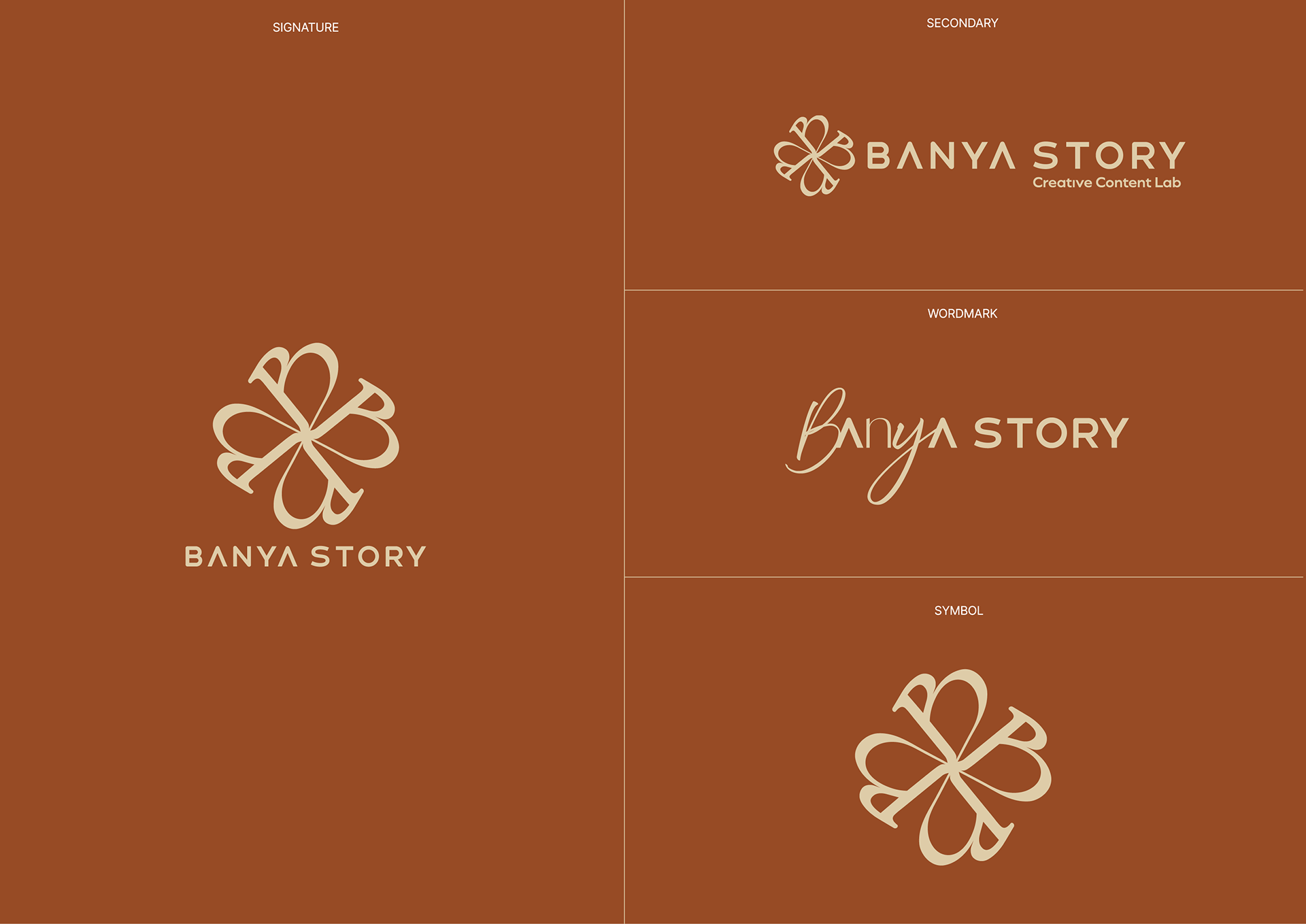 The BANYA STORY identity uses a sophisticated symbol of four 'B's to elegantly express