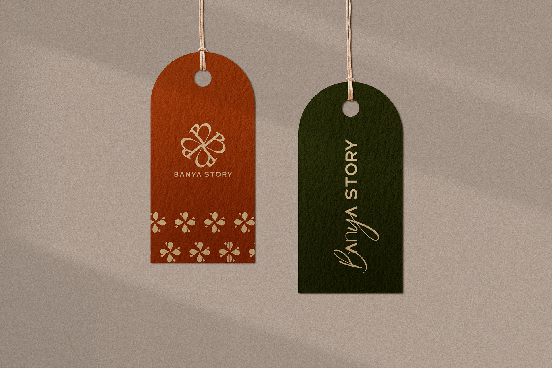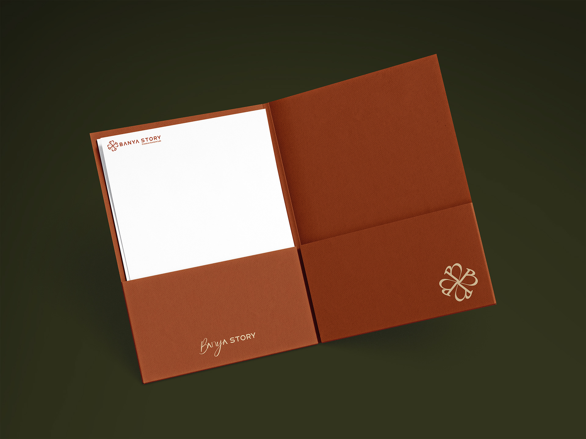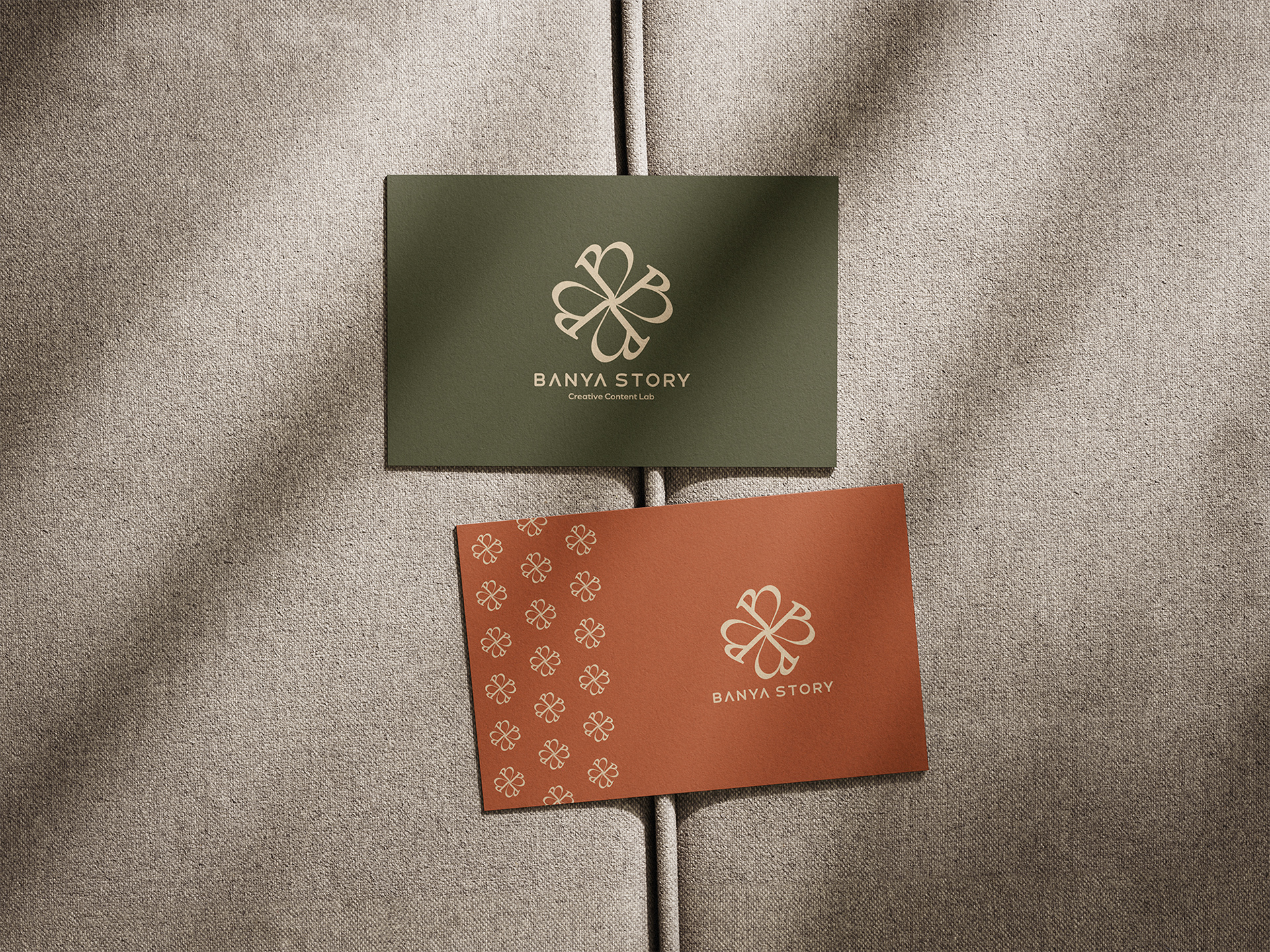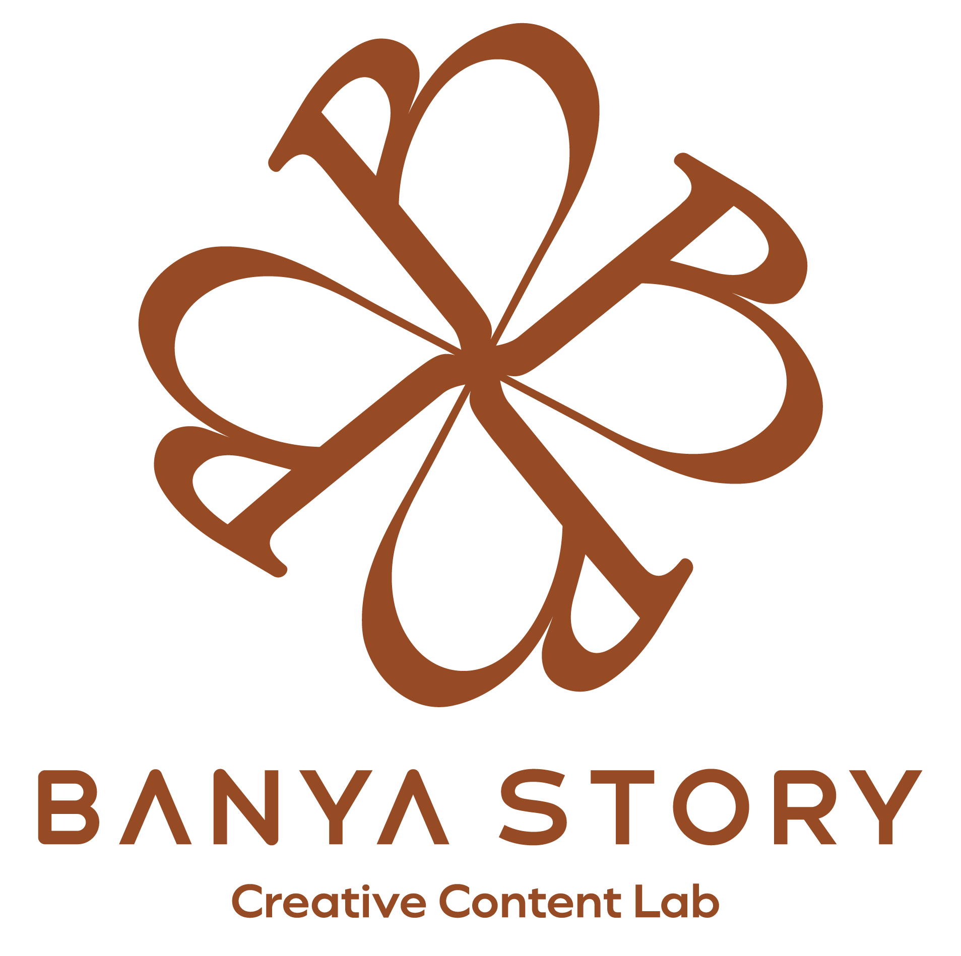 The BANYA STORY identity uses a sophisticated symbol of four 'B's to elegantly express